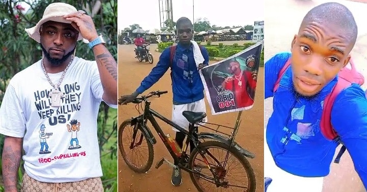 Reactions trail Davido’s harsh response to diehard fan who’s riding bicycle from Benue to Lagos to see him