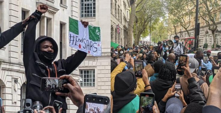 Nigerians in UK staged their version of #EndSARS protest today in London, and they were joined by Starboy Wizkid, and BBNaija’s Mike.