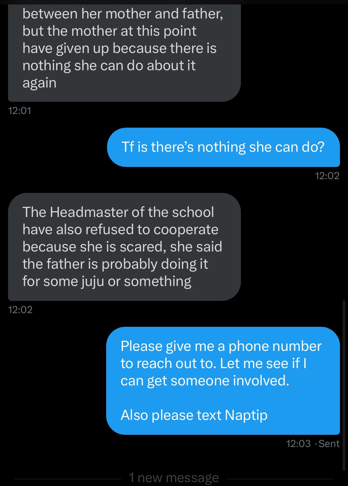 “And the headmaster is refusing to cooperate with authorities because he’s scared of juju? Who exactly does the girl child have in society? What can we do to remedy this situation? Foster care? How do we go about it? Someone please help me out here.”