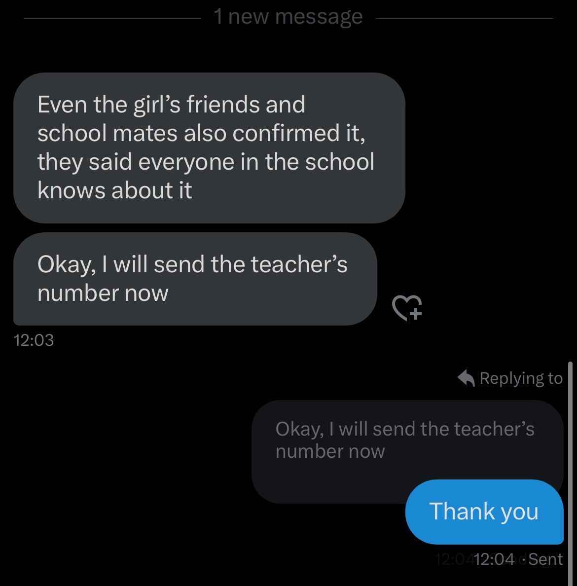 The post was made after the individual received direct messages from a teacher at the girl’s school, who reported the situation.