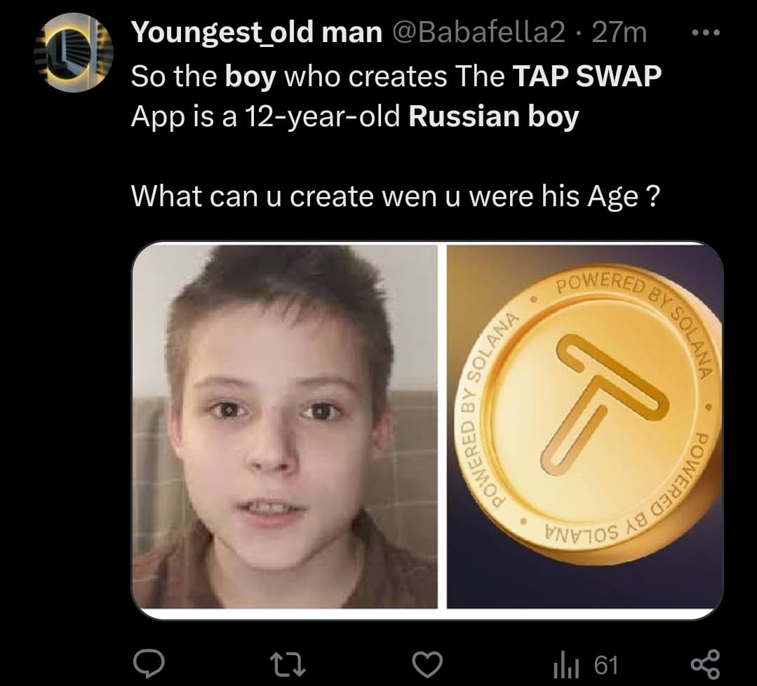 @AkinBamTips: “TapSwap was created by a 12-year-old Russian boy who did it for homework.”