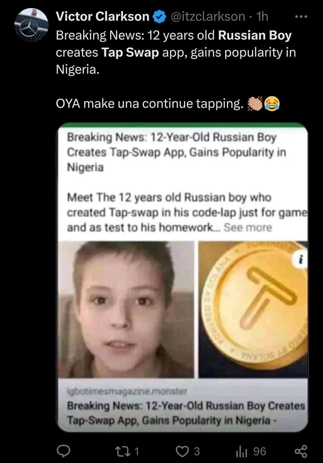 In a series of posts on social media, the boy, whose real name isn’t yet known, has been rumored to be the creator of TapSwap.