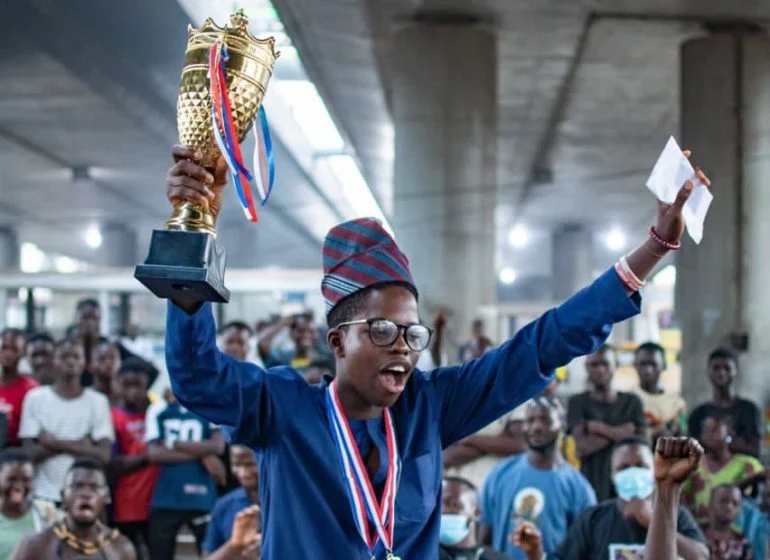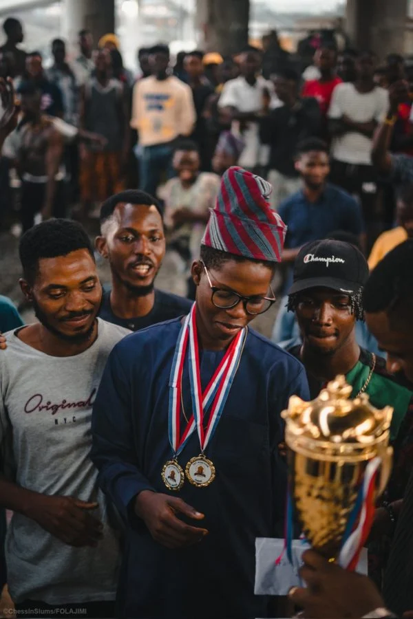Fawaz, an 18-year-old bus conductor who has spent years of his life living under the Oshodi bridge, won the overall chess and mental maths championships at a competition held in Oshodi, Lagos.