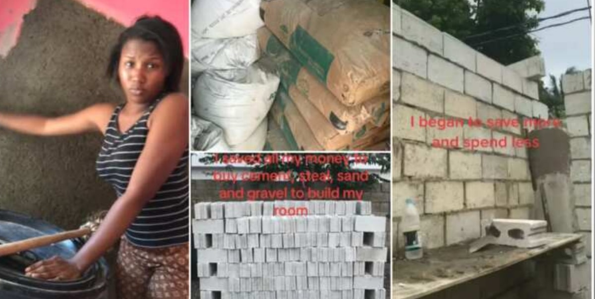 In a video, she showed how she used her savings to buy cement and blocks to build her one-room apartment.