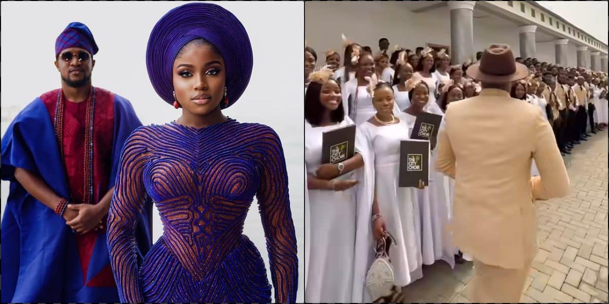 Reactions trailing 200 choirs team at white wedding of Veekee James