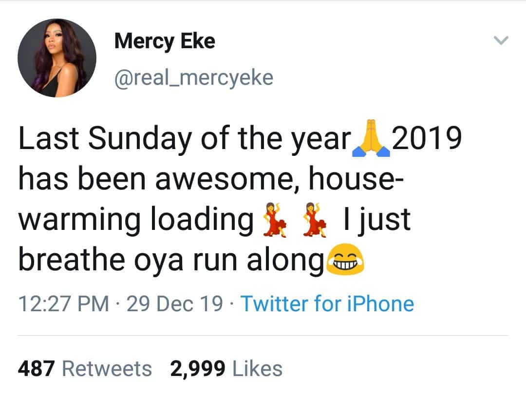 “2019 has been awesome, house-warming loading” – Bbnaija Mercy