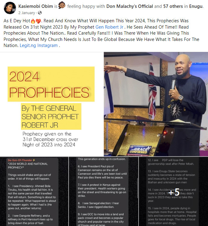 Kasiemobi Obim, a member of Pastor Robert Jr.’s congregation, revisited her Facebook page to resurrect the prophecy by Pastor Robert Jr.