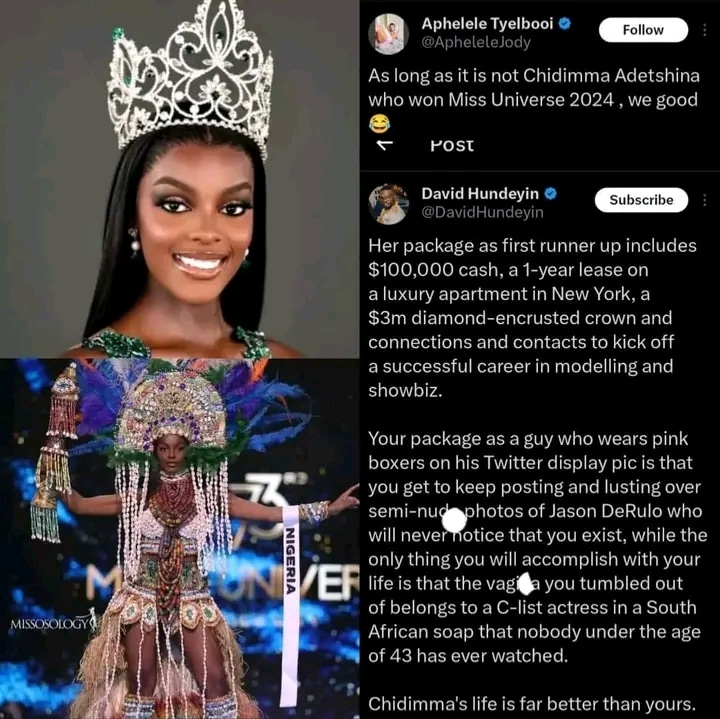 Earlier, Gistreel reported that Chidinma Adetshina has been flooded with accolades after finishing as the first runner-up at the 2024 Miss Universe pageant in Mexico, with Victoria Kjaerbøll Thiesen declared winner.