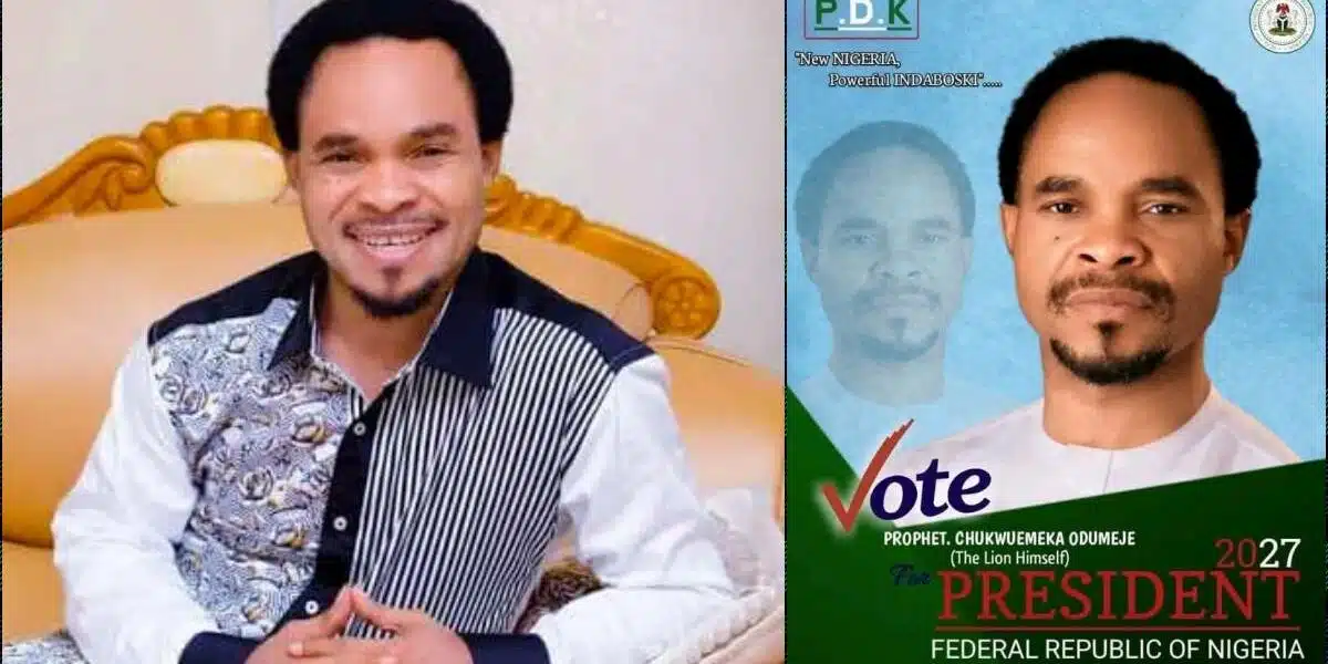 Controversial Nigerian preacher Prophet Chukwuemeka Odumeje has once again stirred public attention following the circulation of a campaign poster suggesting his interest in the 2027 presidential race.
