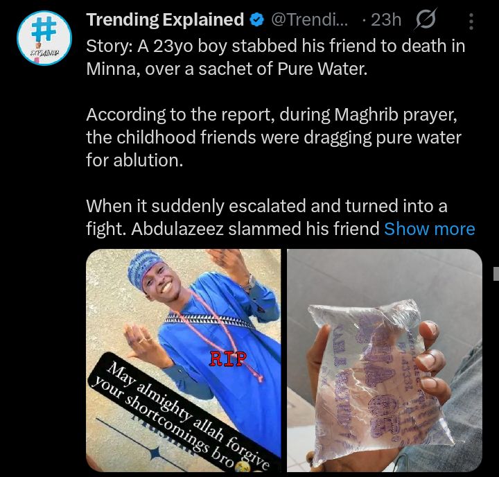 The shocking incident has ignited discussions across online platforms, with many Nigerians expressing disbelief at how a simple argument over water could escalate into a fatal stabbing.