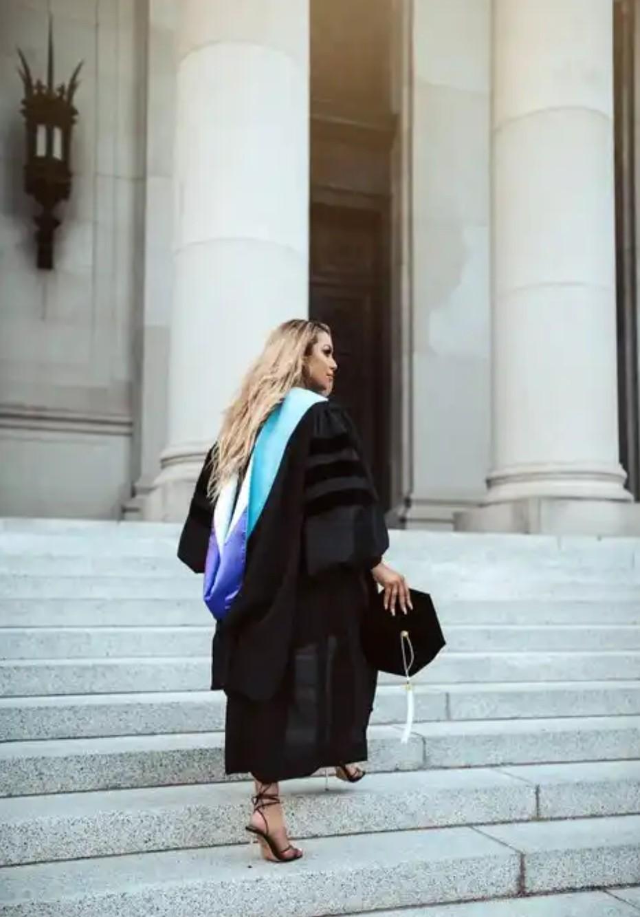 An elegant young lady has taken to social media to share her joy with friends and well wishers after bagging a doctorate degree at 26.