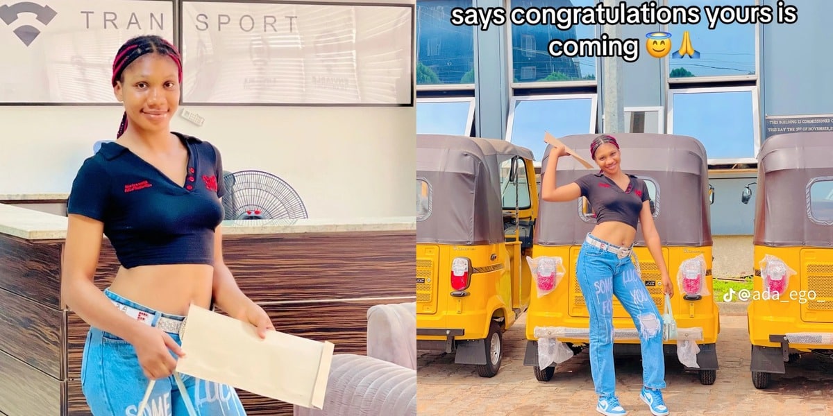 A beautiful Nigerian lady receives praise on social media as she purchases 3 tricycles at once while also registering them for transport service.