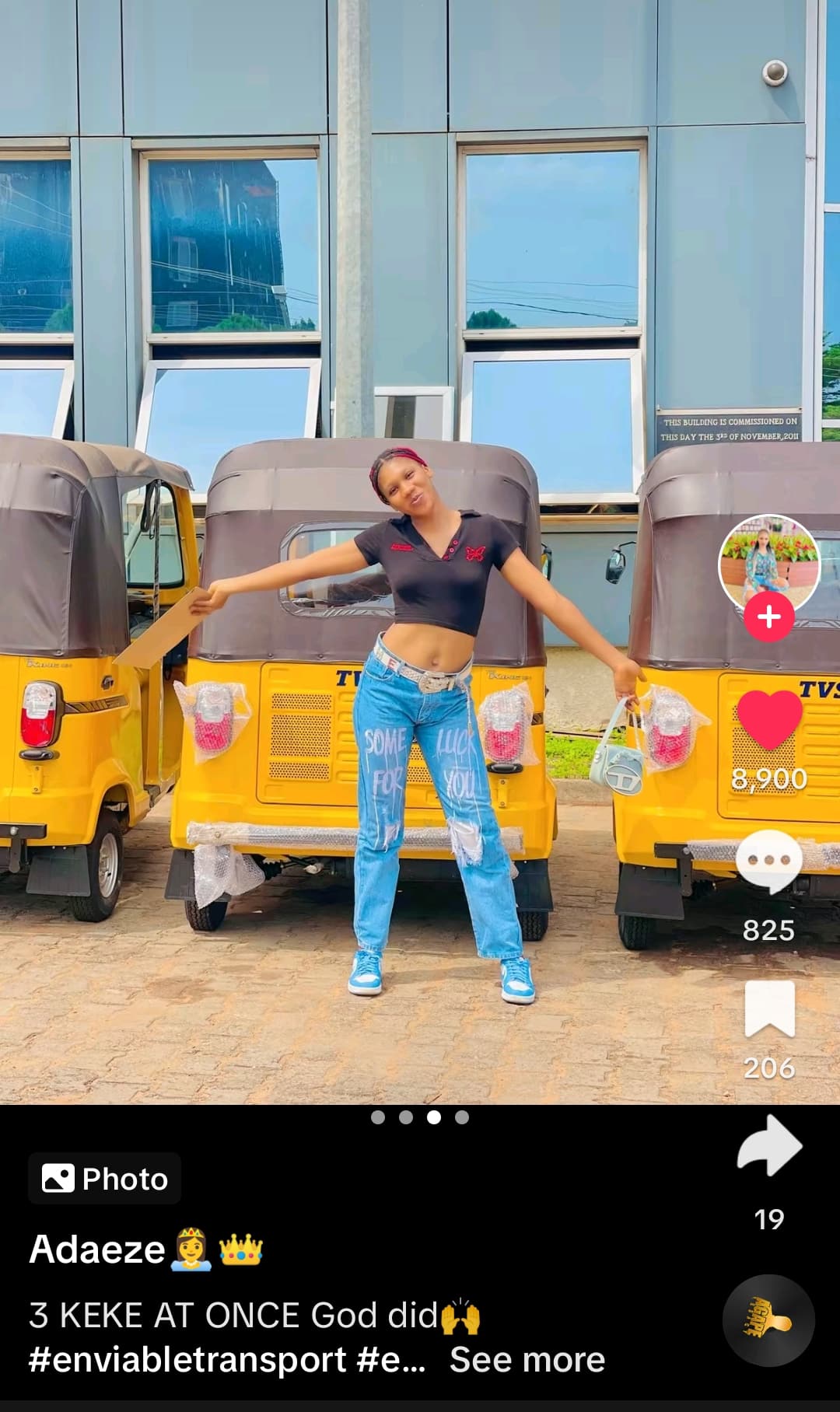 This is contained in a video captioned: “3 Keke at once, God did.”