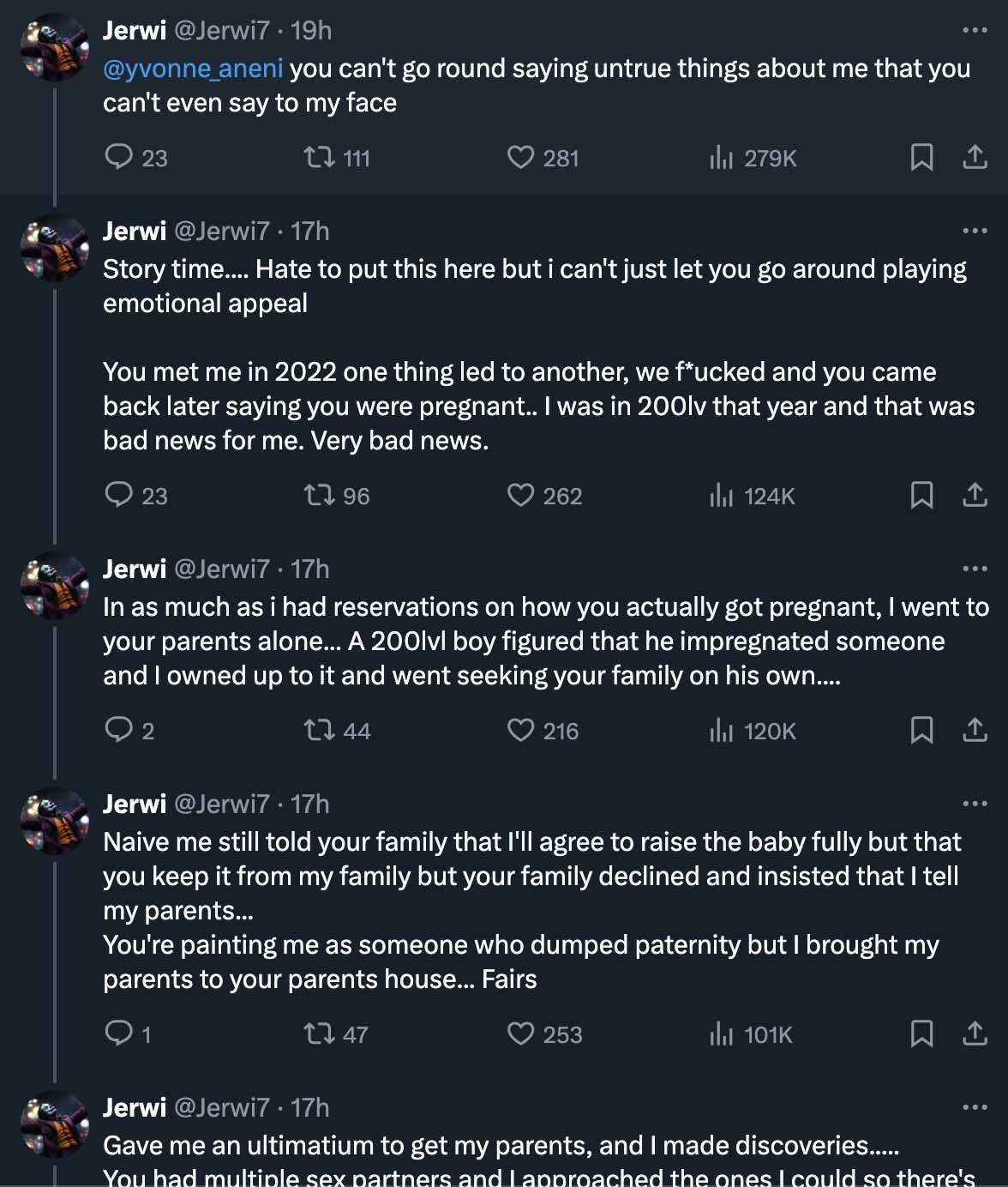 “You met me in 2022 one thing led to another, we f*ucked and you came back later saying you were pregnant.. I was in 200lv that year and that was bad news for me. Very bad news.