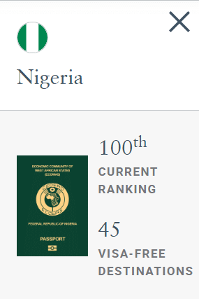 The Henley Passport Index further reveals that Nigerians currently have access to approximately 45 visa-free countries.