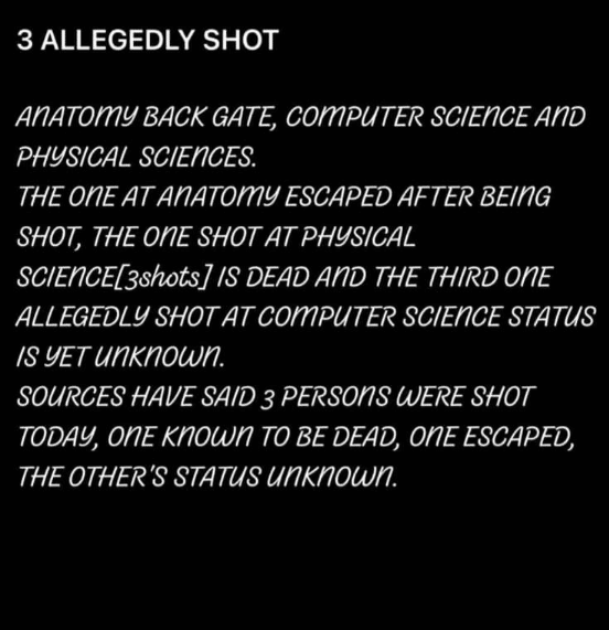 The unfortunate chain of events is believed to have its roots in an earlier altercation that had taken place in Ekiadolor, a community near the university, culminating in the violent shooting incident on campus.