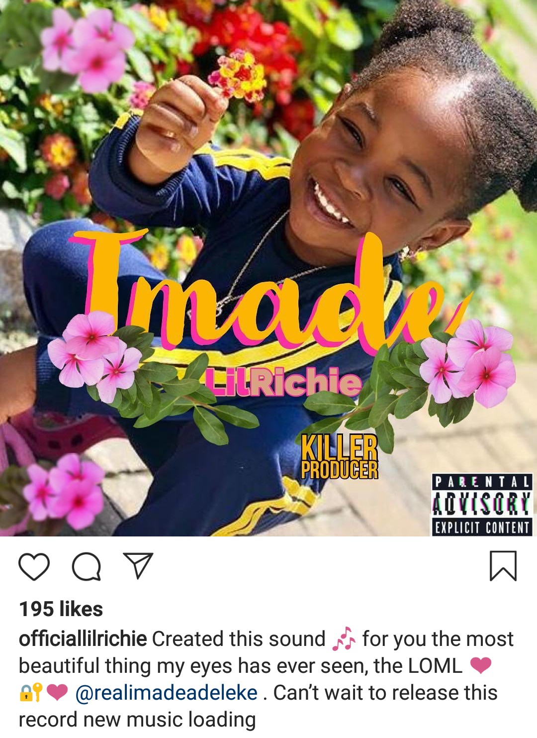 “Created this sound ? for you the most beautiful thing my eyes has ever seen, the LOML ❤️?❤️ @realimadeadeleke . Can’t wait to release this record new music loading”.