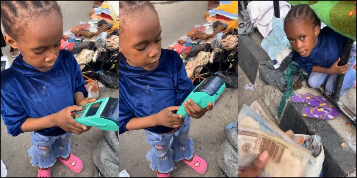 A Nigerian man has stirred reactions as he shares video of a 7-year-old girl who brilliantly used a POS machine to attend to him at the market.