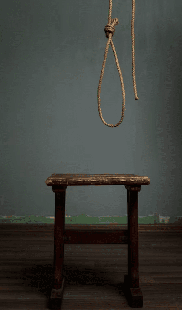 He was found dangling from a rope, which was tied to the burglary proof of a window in the kitchen.