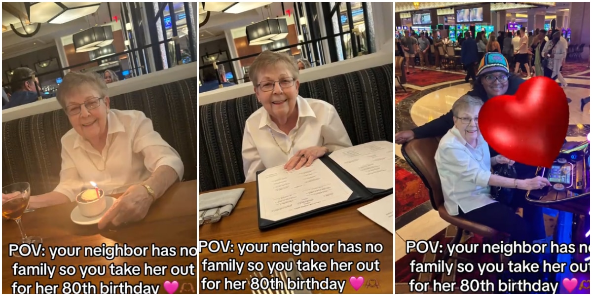 “Your neighbour has no family so you took her out for her 80th birthday,” the lady’s video caption read.