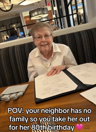 According to Sasha Gaston’s account on TikTok, she discovered that her elderly neighbor, who lacks family, was celebrating her 80th birthday alone.