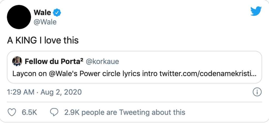 A fan identified as Korkaue, shared the video on Twitter and tagged singer, Wale to the tweet. Surprisingly, Wale replied the tweet, as he expressed his love for Laycon’s act, tagging him “A king”.