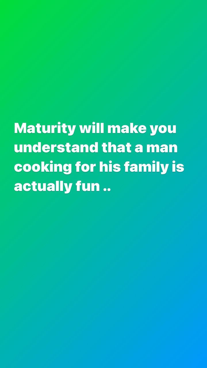 In his words: “Maturity will make you understand that a man cooking for his family is actually fun.”