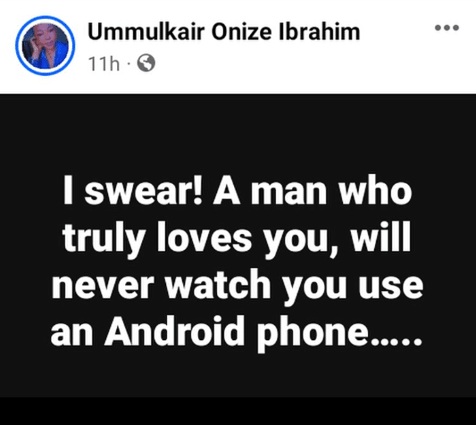 A man who loves you cannot watch you use Android – Nigerian lady sparks controversy