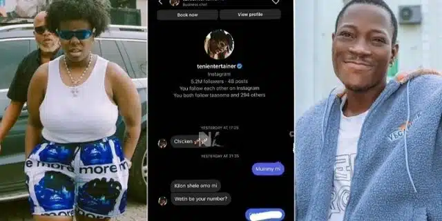 The dialogue, which was shared by DJ Chicken on Instagram, showed Teni requesting his phone number.