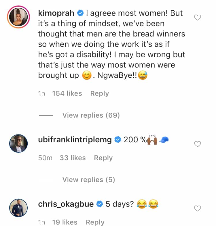 MMMG boss, Ubi Franklin commented on the post saying he completely agrees with the opinion but reality TV star, Kim Oprah partially disagreed with the opinion.