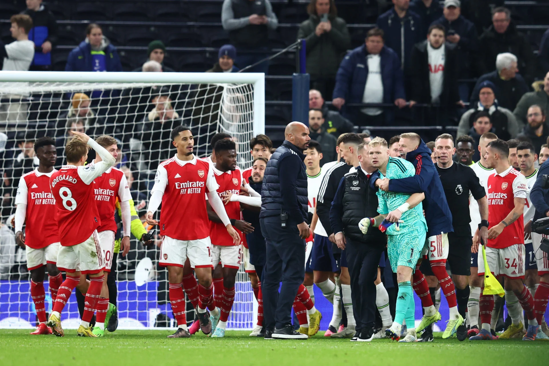 Arsenal’s goalkeeper Aaron Ramsdale was kicked by a Tottenham fan during his side’s 2-0 win over their North London rival.