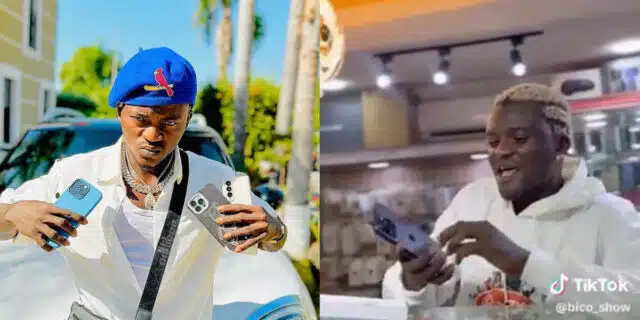“Abeg on am make e no be fufu” — Portable implores phone dealer as he buys iPhone 15