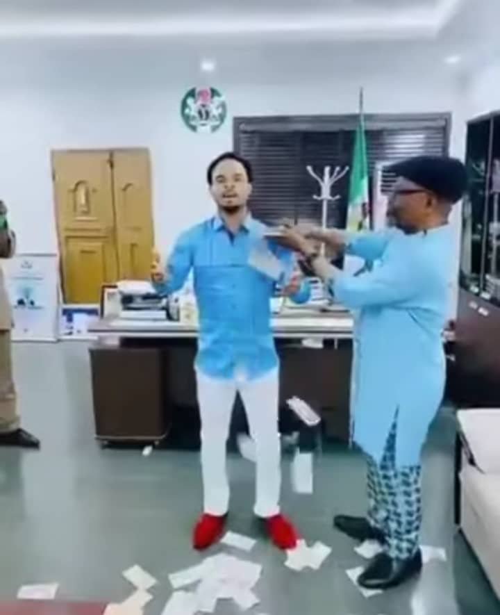 Watch video of Abia State COS spraying Odumeje money in the governor’s office below;