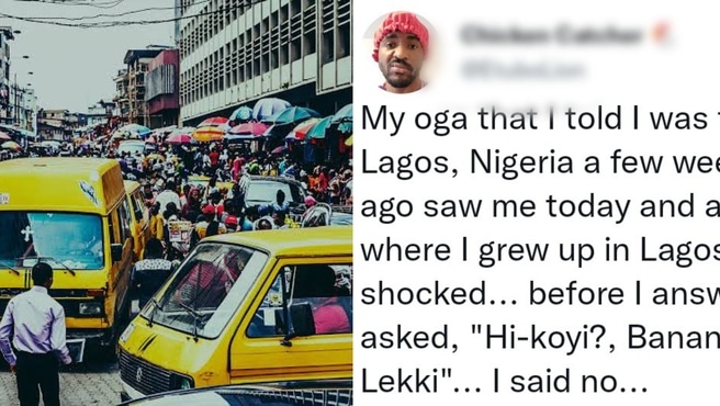 “My oga that I told I was from Lagos, Nigeria a few weeks ago saw me today and asked where I grew up in Lagos… I was shocked… before I answered, she asked, “Hi-koyi?, Banana-Island? Lekki”… I said no…