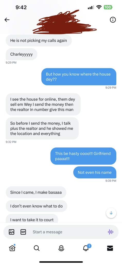 “This man apparently bought the house and put it in his girlfriend’s name and also gave the corolla to the girl to drive. Since I came, I haven’t set my eyes on this man.”