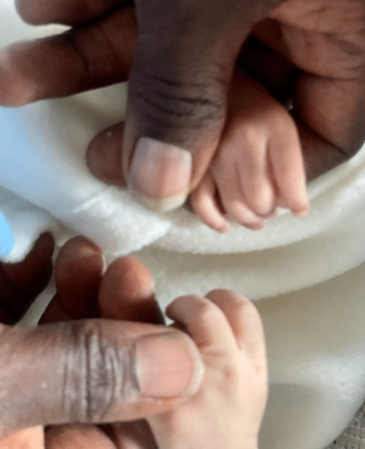 Sharing a picture of himself holding the tiny hands of his twins, he thanked his wife and affirmed his unwavering love for her.