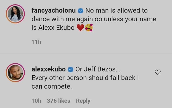 Alex Ekubo, however, reacted by saying that only himself and the richest man in the world, Jeff Bezos are free to dance with his fiancee.
