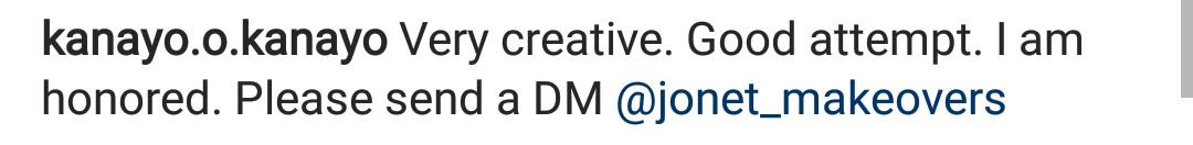 Reacting to the photo, Actor Kanayo O. kanayo rewarded the artist with a short appreciation post on his page. He also asked her to send him a DM for further reward.