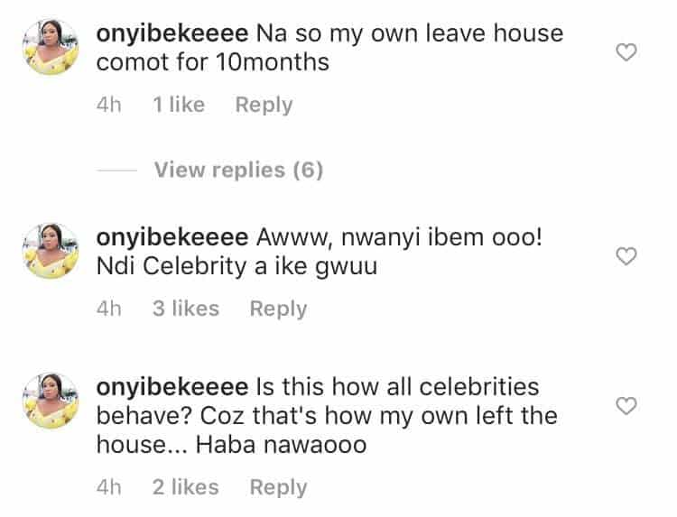 In an Instagram exchange with a follower, Onyi Adaba revealed that she has been subjected to pain and trauma for the past 10 months as her husband Ken Erics abandoned their marriage and moved out of their apartment.