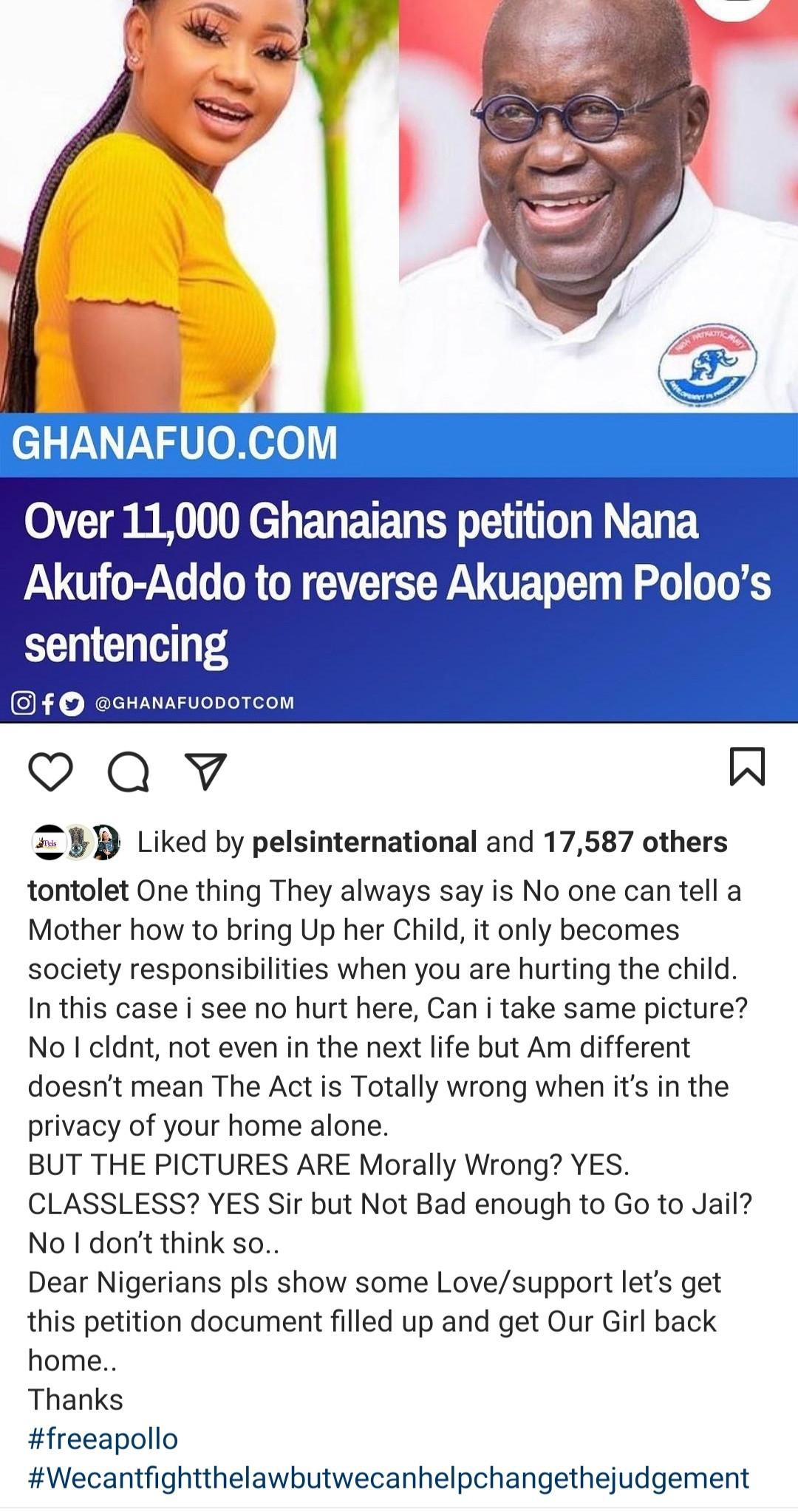 Popular Nollywood actor, Ugezu J. Ugezu opposes actress, Tonto Dikeh’s call for Nigerians to get involved in Akuapem Poloo’s case in order to see that she is freed.