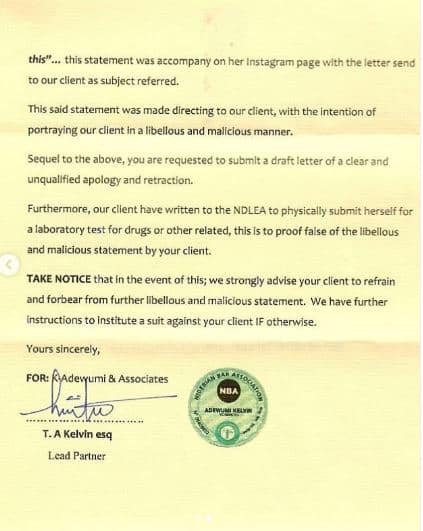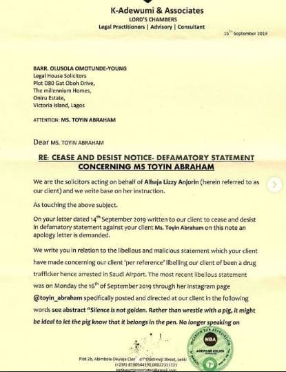 She revealed this while responding to the summon from Toyin Abraham’s Lawyer, asking her to give a public apology over an alleged defamation of character.