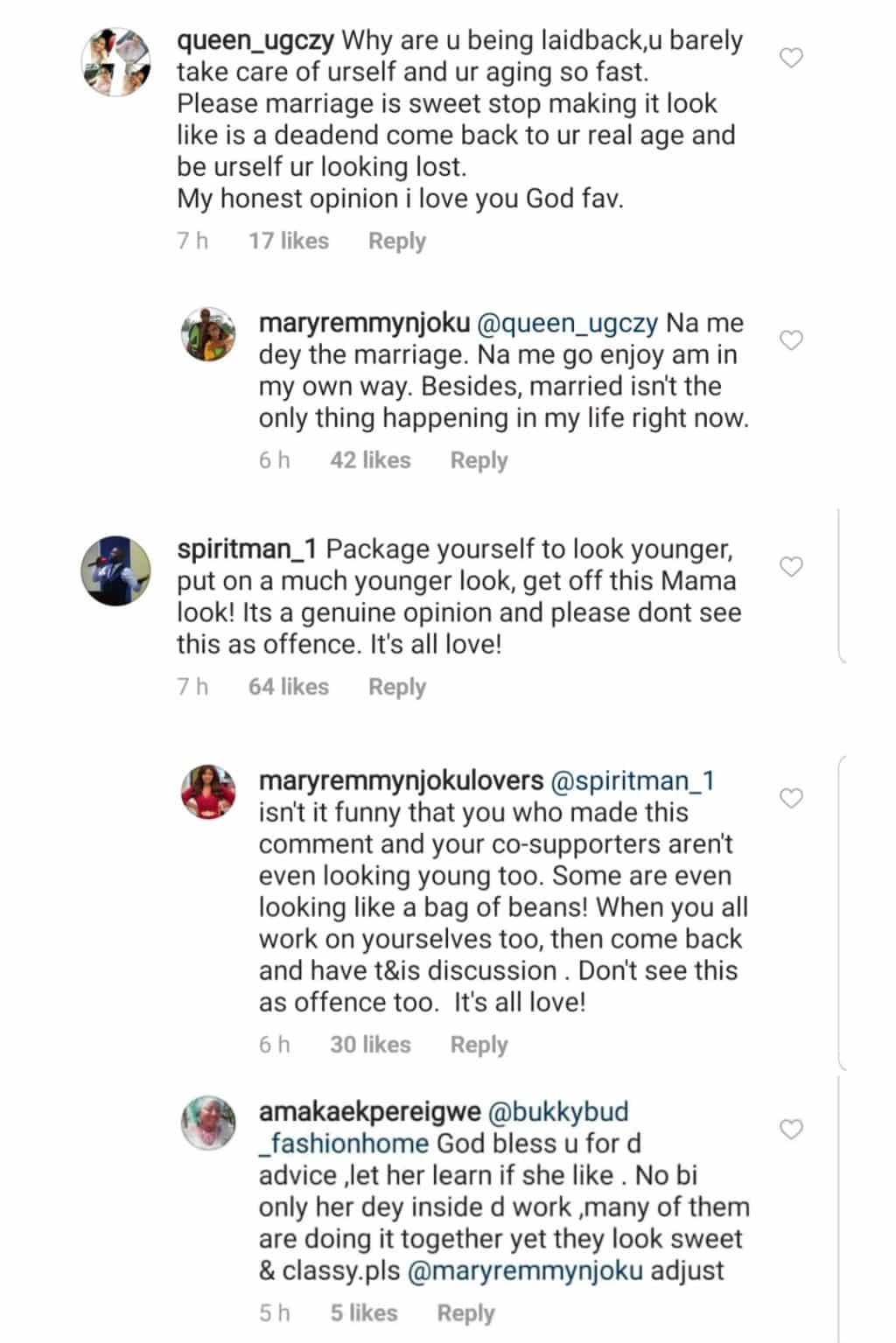 Others mentioned point blank that marriage has made her look too old for her age, and advised her to stop making marriage look like a bad experience.