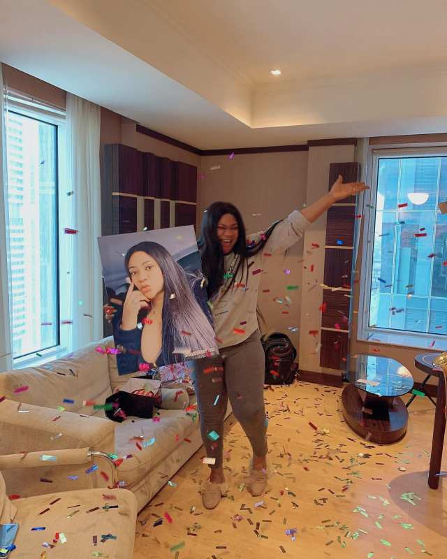 “They Really Got me???♀️ Walked into my Room and boom this happened ??♀️ Like in Far away Dubai with this much love? Naa I was Shocked??♀️ It is not even my birthday yet and the love is getting real??