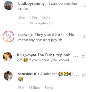 However, some fans are claiming it might be another ‘AUDIO’ whip alert because the man in the video can be heard saying ”he saw it for her” and it does not outright mean she has paid for it.