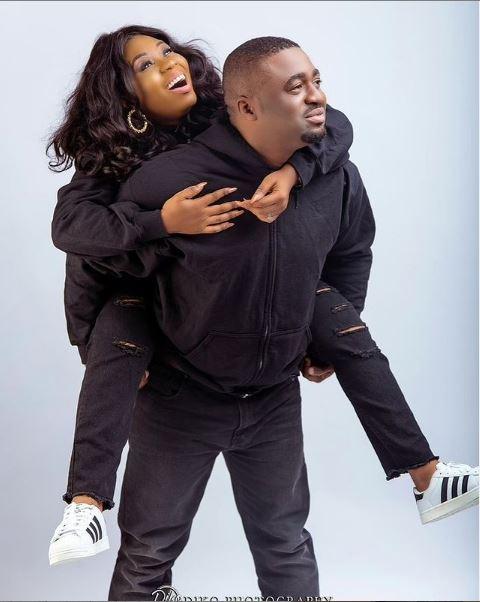 The 32-year-old while celebrating the day she gave a resounding YES to the love of her life shared a loved-up photo which goes a long way to portray happiness in their marriage.