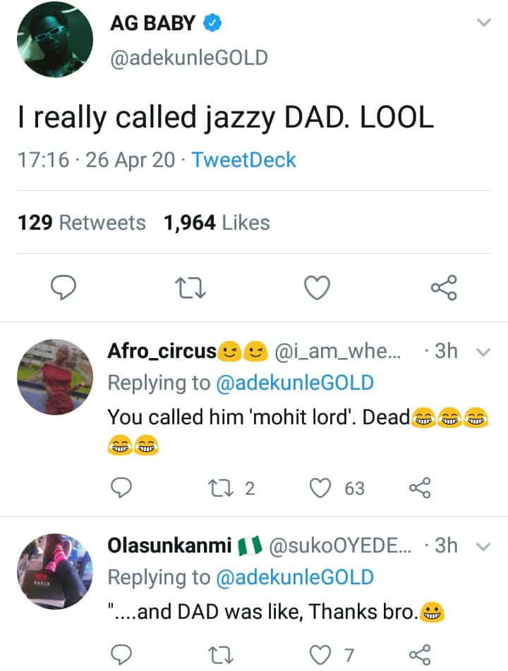 Adekunle Gold said he recently rediscovered the chats when he tried to send Don Jazzy a DM this year and he was so embarrassed. He said, “I wanted the ground to swallow me.”