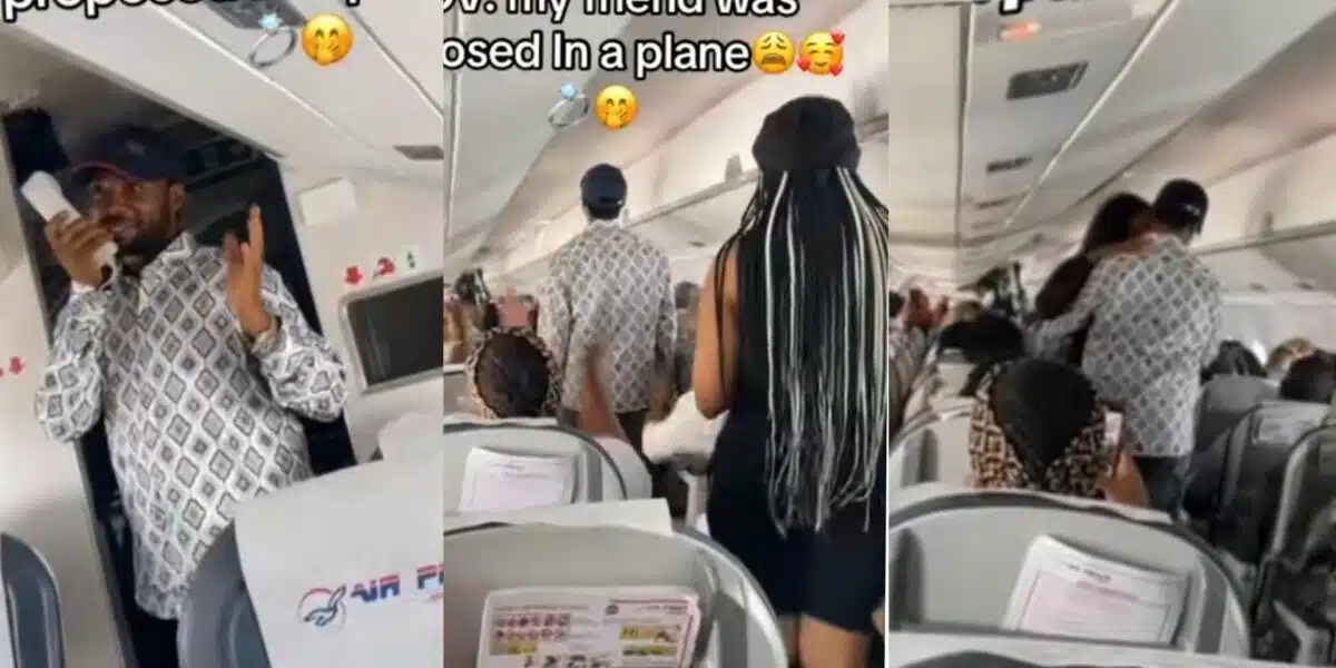 The Nigerian man was seen on a flight using the pilot’s microphone to announce the marriage proposal to his girlfriend, Precious.