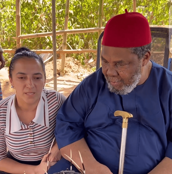 Adorable video of Pete Edochie teaching oyinbo lady Igbo language stirs reactions