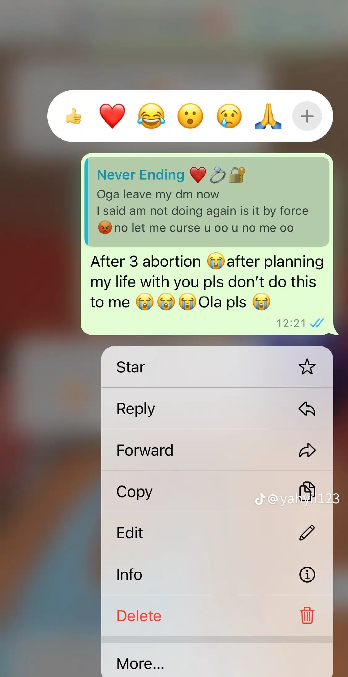 “After 3 abortions, Ola please” – Nigerian lady shares emotional breakup chat after 5-year relationship