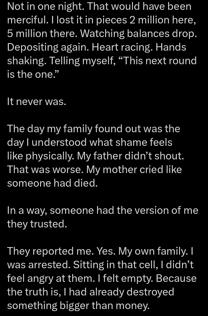 The X user further shared that he sold his family’s inheritance for ₦35 million and lost it all to betting.